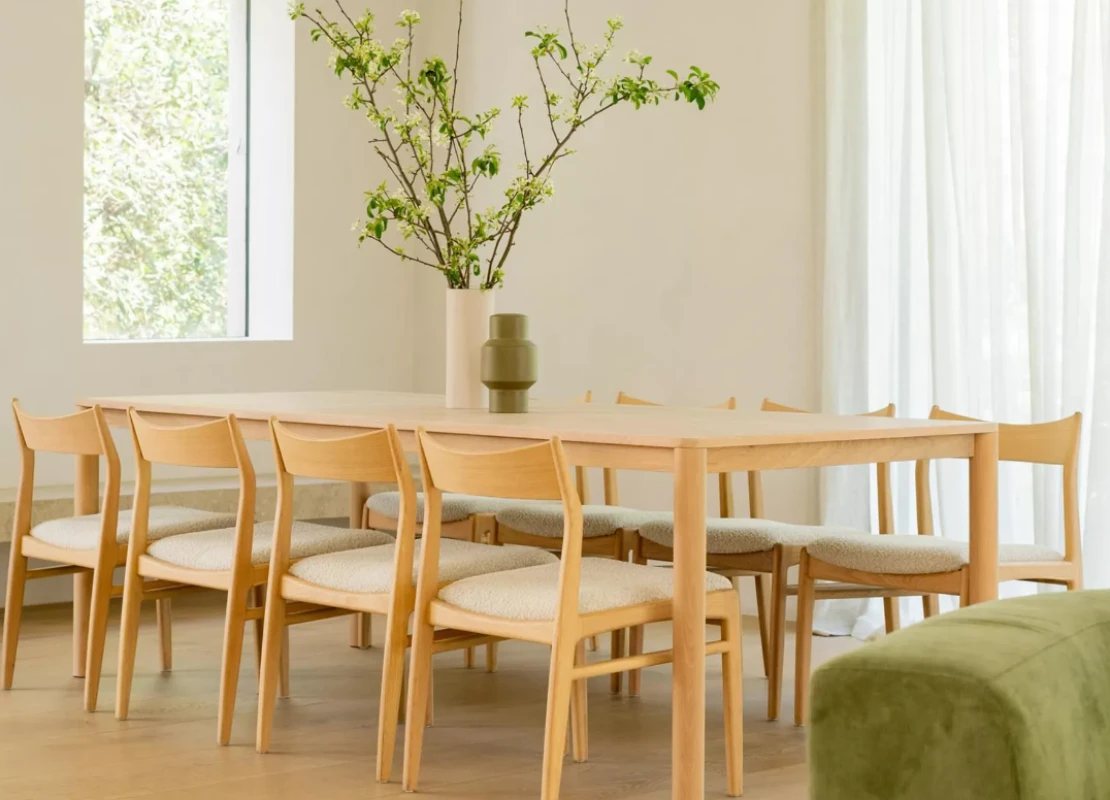Caracterizada por seus cantos delicadamente trabalhados, a Mesa de Jantar Pura é a peça central perfeita para qualquer ambiente de jantar. Sua parte superior em folheado de Eucalipto assegura durabilidade por muitos anos, enquanto seu perfil magro permite que amigos e familiares se sentem confortavelmente com espaço generoso.
