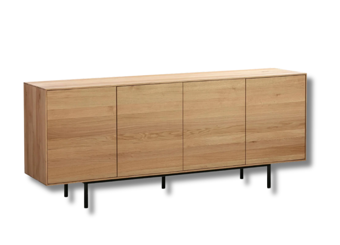 Caracterizado por uma estrutura sólida de Eucalipito Nacional, oferece um armazenamento generoso dentro de uma forma refinada, também contendo duas gavetas internas para infinitas opções de armazenamento. A elegante estrutura metálica das pernas destaca um contraste impressionante entre os dois materiais.